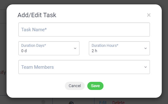 Within this overlay you can give the task a name, an average duration (how long it typically takes to complete this step), and assign it a default team member(s) if you wish. Once you have everything in place for the Task, click Save, and it will be added to that calendar's workflow.