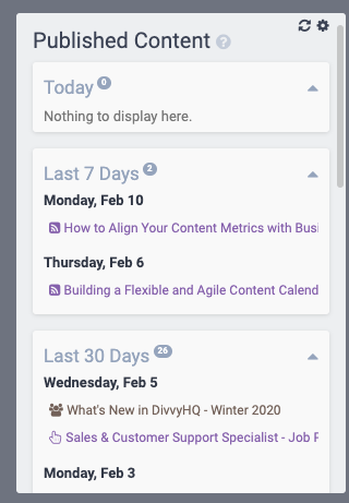This article includes the details of how to use the Published Content widget on your DivvyHQ Dashboard.