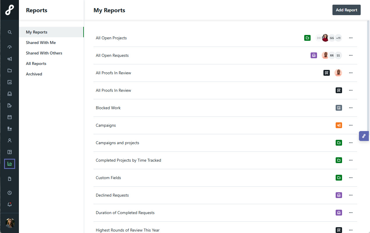 Create charts and visualizations to quickly understand and share report data.