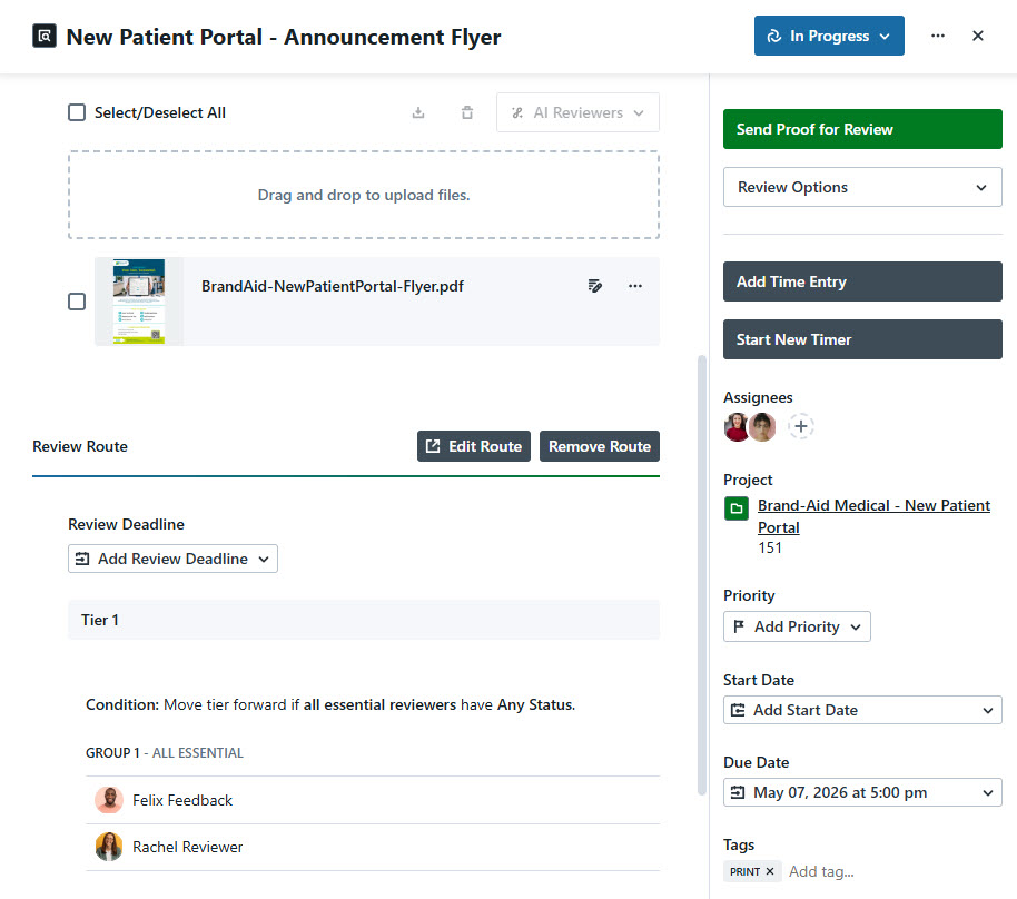 Open your Proof and set it up as you normally would, including adding your asset(s) and applying a Review Route.