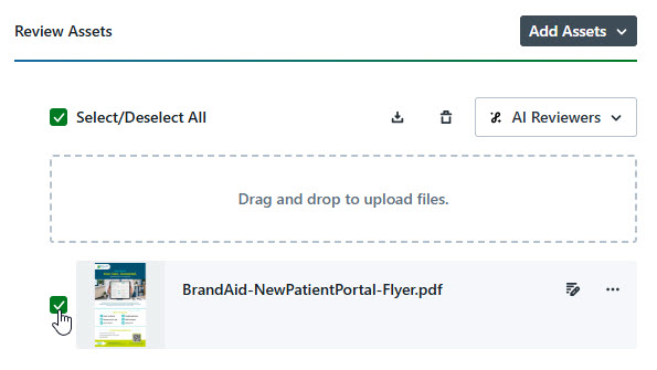 Use the checkbox next to the asset thumbnail to select the asset(s) you want to configure for AI Reviewer checks.