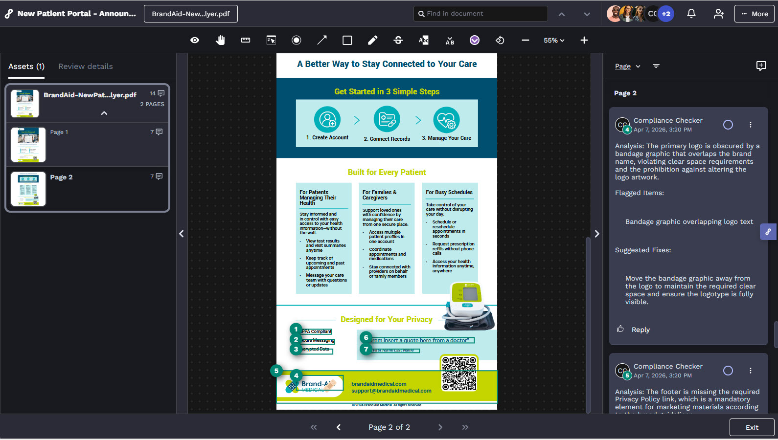By identifying compliance issues early, whether during content creation or as part of the review process, AI Reviewers help reduce rework, accelerate approval cycles, and allow teams to focus on higher-value, strategic feedback. This enables organizations to scale content creation while maintaining control, consistency, and compliance across every asset.