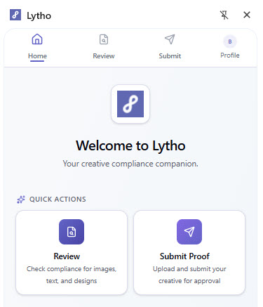 Permissions are respected within the extension. Only Lytho team members with appropriate access can submit Proofs.From the extension home screen, you can: