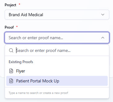 After selecting a Project, available Proofs will be available under the Proof dropdown.