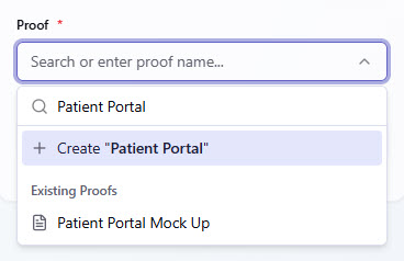 Select + Create "Proof name" to create a new Proof if needed.