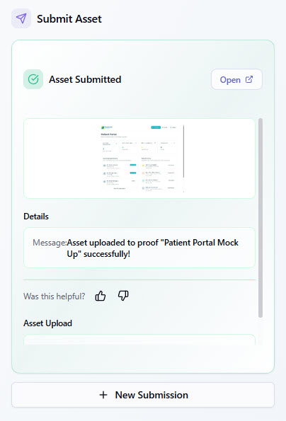 After selecting Submit Asset, you will see a confirmation that your asset has been successfully submitted.