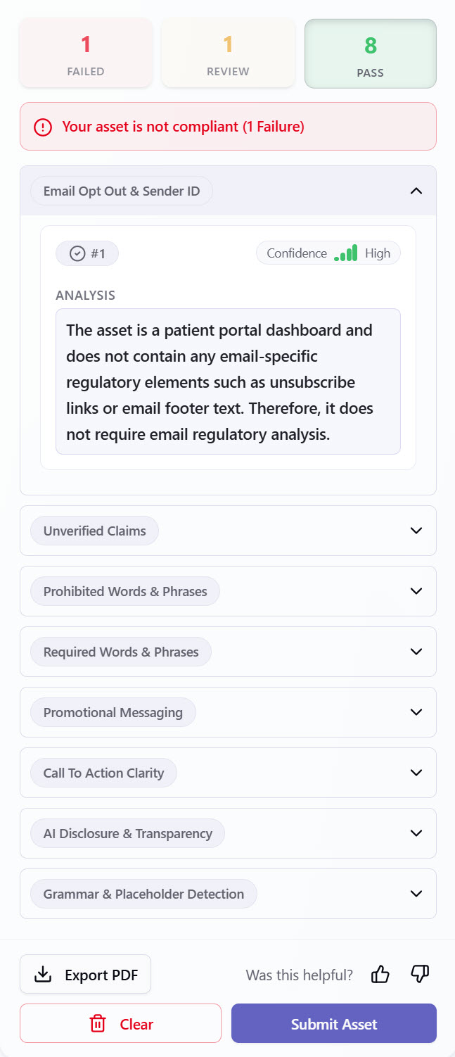 - ChatGPT, Claude, or AI-generated content – Validate AI-generated copy to ensure it aligns with brand and regulatory standards