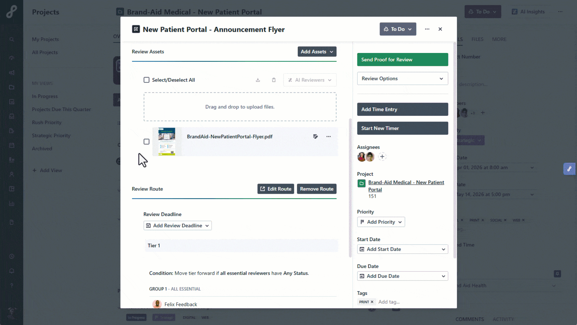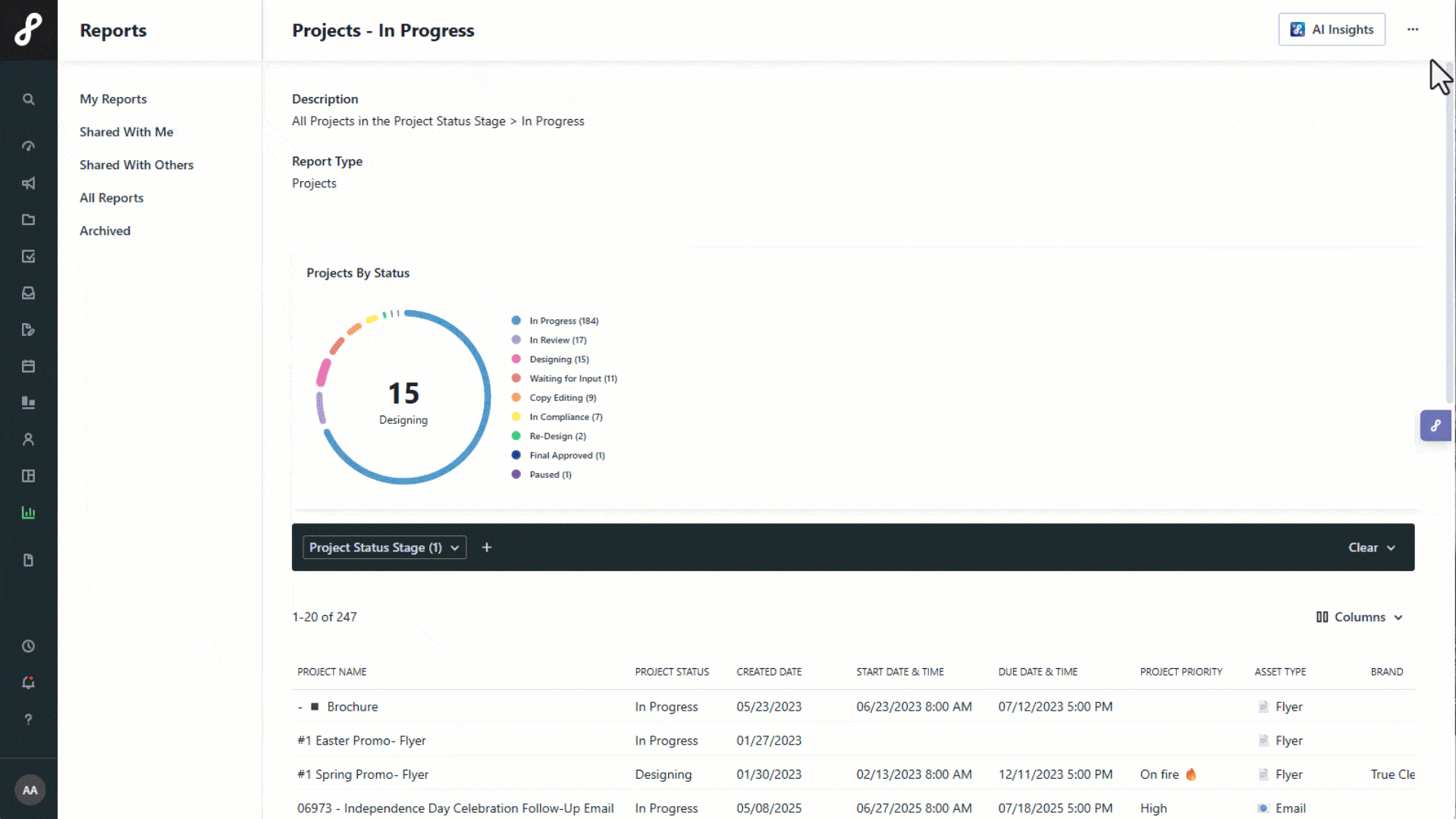 AI Project Insights provides on-demand intelligence directly within your project workspace. With a single click, users can generate project summaries, identify risks and blockers, and surface key updates without manually reviewing activity across tasks and approvals. This helps teams stay aligned, proactively manage work, and reduce the time spent compiling status updates so they can focus on execution.